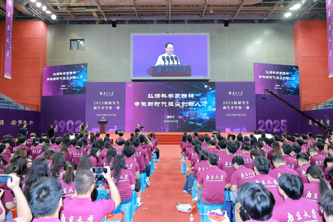 On September 13, Tan Tieniu, Chair of NJU CPC Council and Academician of the Chinese Academy of Sciences, delivered the first lectures for new undergraduate and graduate students, titled "Pass on the NJU Spirit, Shoulder the Task of Rejuvenation, Write the Most Beautiful Chapter of Youth" and "Carry Forward the Spirit of Scientists, Strive to Become Top Innovative Talents of the New Era," respectively.