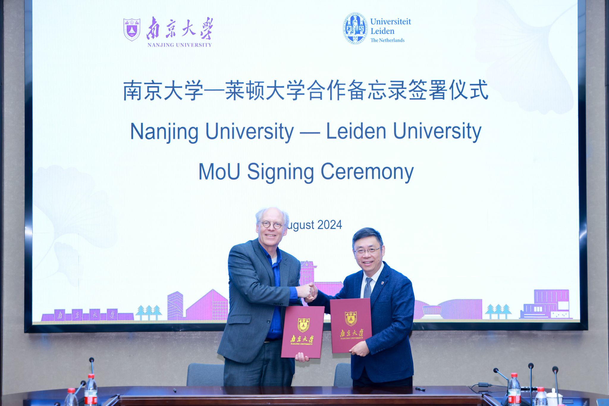 On August 8, 2024, Jasper Knoester, Vice President and Dean of the Faculty of Science of Leiden University led a delegation to visit NJU. Lu Yanqing, NJU Vice President, met with the visitors at the Xianlin Campus. The two sides discussed deepening the collaboration in various areas and signed a Memorandum of Understanding for the framework of future cooperation.