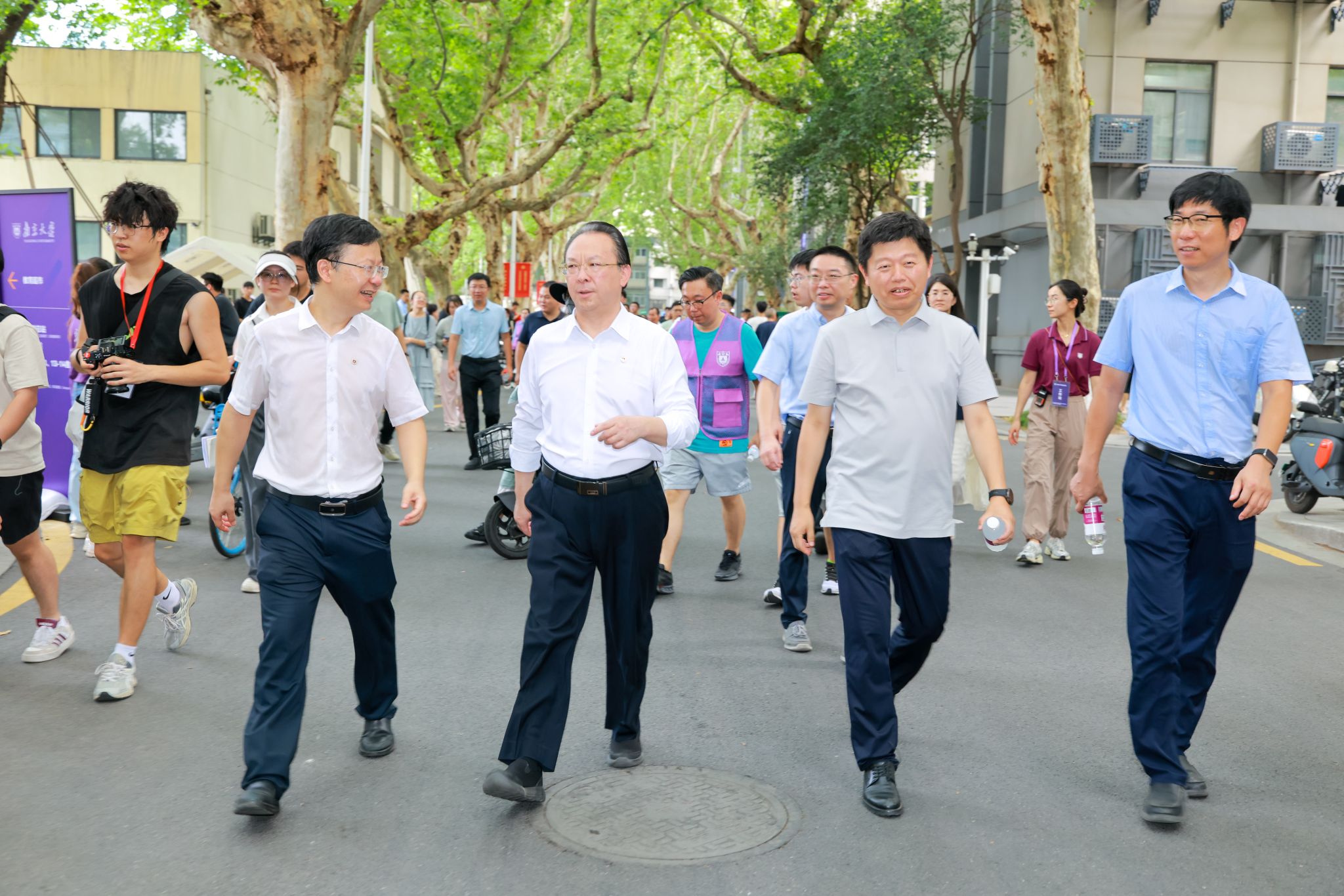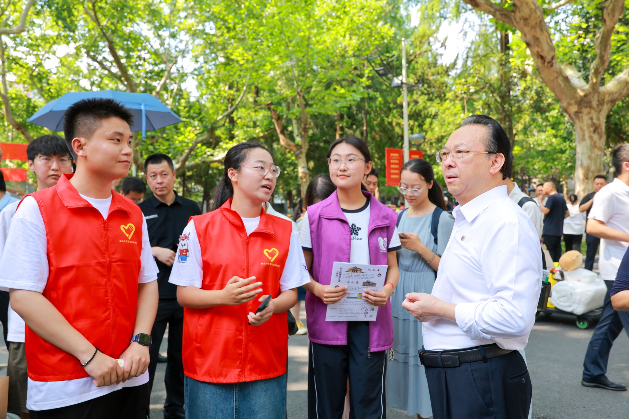 “热烈欢迎2025级新同学!”“南雍育英才,奋进向未来!”处暑风清,梧桐影疏,展板上的标语字字铿锵,映衬着新生朝气蓬勃的笑脸,鼓楼校区处处洋溢着浓浓的迎新氛围。谭铁牛沿途细致地了解各迎新点位的工作情况,耐心询问物资储备、报到流程与志愿服务等具体安排。他强调,要着力优化校园周边的交通秩序,保证迎新工作的各个环节紧密配合,高效流畅、有序推进,确保新生一路畅通、顺利抵校。