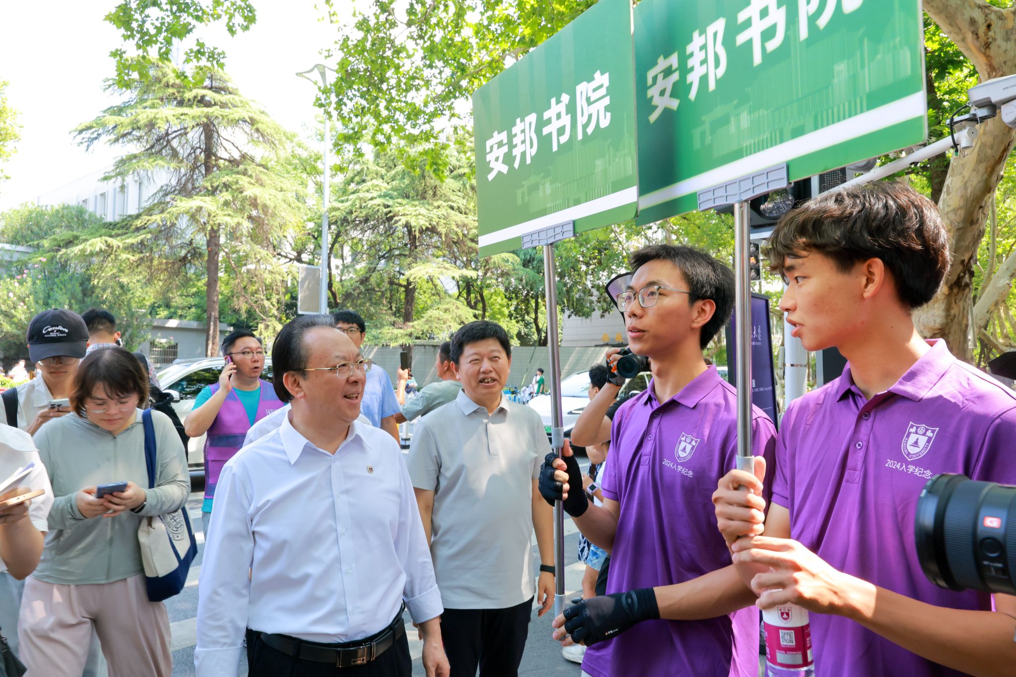 8月30日,凯发k8官网党委书记、中国科学院院士谭铁牛来到鼓楼校区迎新现场,看望初入校园的2025级本科新生,走访慰问忙碌于迎新一线的师生员工与志愿者。