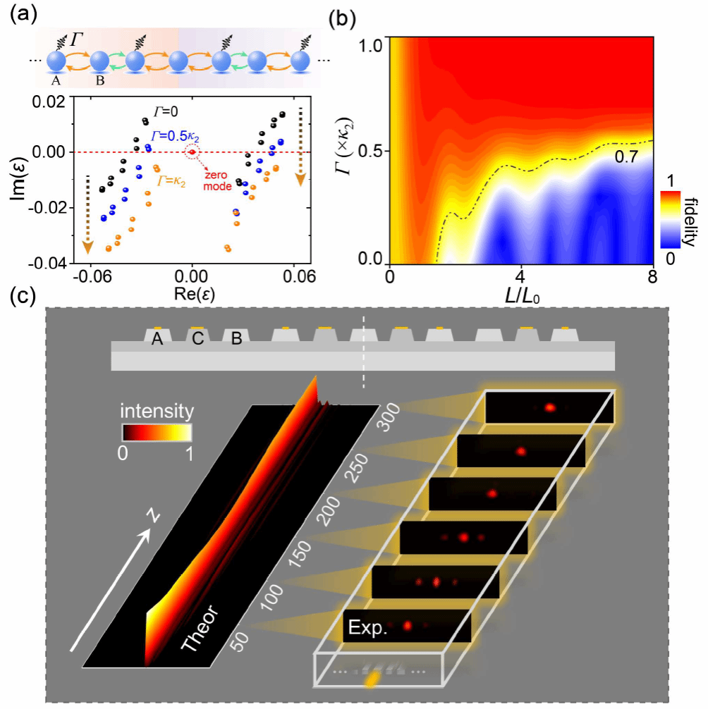在这个工作中,研究团队基于光波导中的耦合控制方案,在实验上揭示并验证了由耗散主导的敏感拓扑态,丰富了拓扑态关于鲁棒性的认知。更重要的是,团队采用的耗散工程策略,成功实现了对拓扑态鲁棒性程度的调控,使其可以从“稳定”转为“敏感”,也可以“敏感”转为“稳定”。该成果不仅深化了对非厄米拓扑态的理解,所采用的片上复耦合设计与耗散调控方案,也为片上光场调控提供了更多可能性。