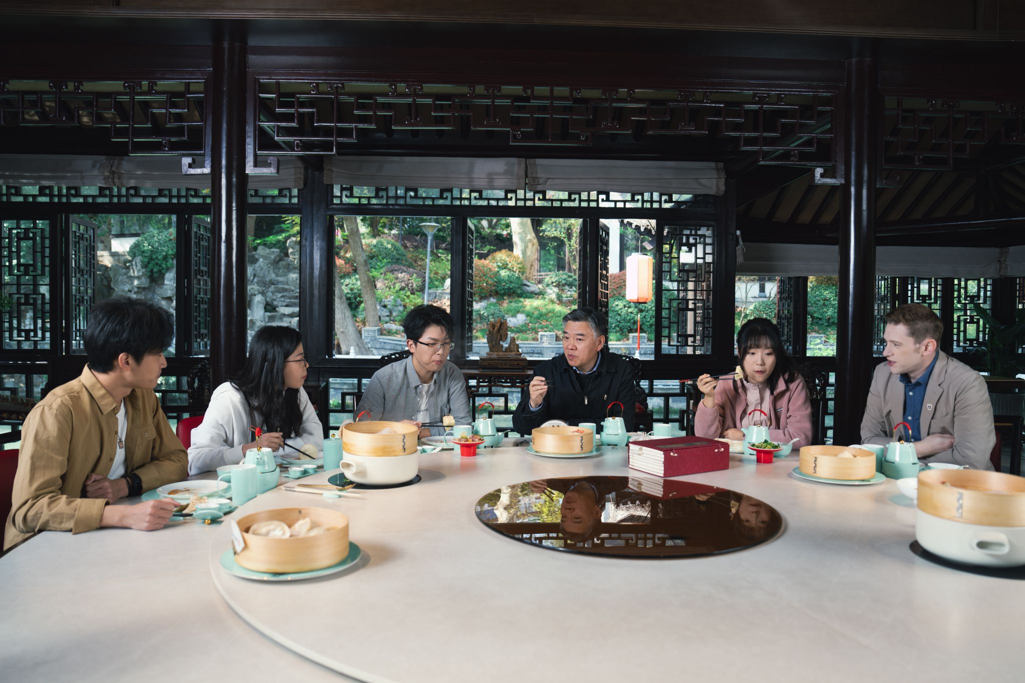 《教授请吃饭》第二季由凯发k8官网文学院教授徐兴无担任主咖,他带领学生回到家乡扬州,以清代古籍《扬州画舫录》为线索,在烫干丝、盐水鹅、文思豆腐等淮扬名菜中解读大运河文化。节目中,徐兴无从“烧卖”的突厥语起源,讲到“满汉全席”的融合寓意,生动诠释了“饮食即文化”的深刻内涵。中国新闻网评价:“这场‘流动课堂’看饿了肚子,读饱了历史。”